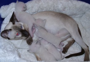 Am 14.08.04 abends erblickten drei gesunde Siam-Kitten das Licht der Welt : |