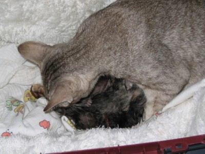 Bilder oben: Die Kitten unmittelbar nach der Geburt.