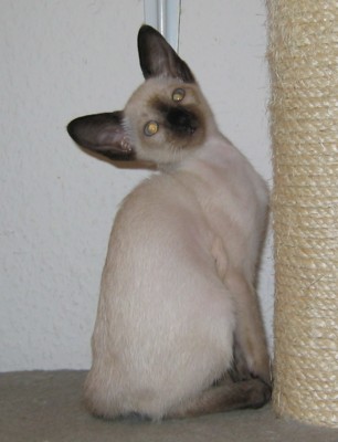 Elisa ist unsere kleine seal-point-Dame. Hier im Alter von vier Monaten. Sie wird unsere Zucht bereichern.